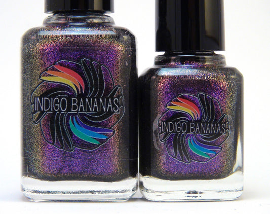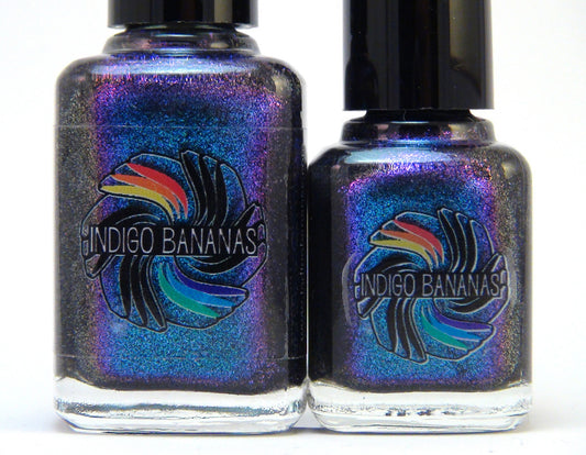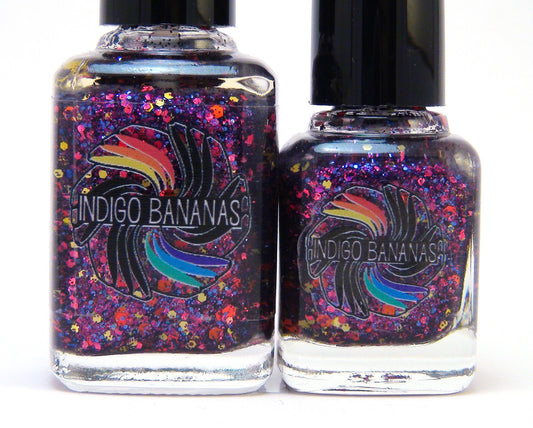 Seven core polishes in the initial Indigo Bananas lineup, with different finishes - a rainbow of polish! (2013 Feb)