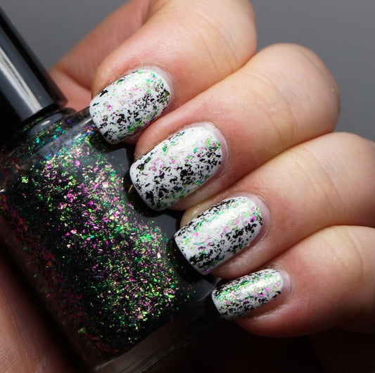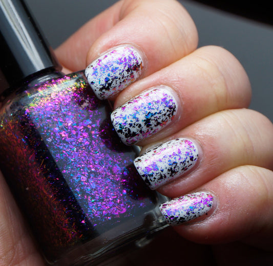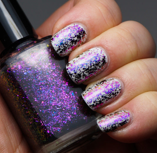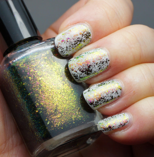 "Mega Chrome Flakies" are Indigo Bananas' name for multichrome flakies - super thin, highly colorshifting, chrome/metallic large flakes. These are larger and brighter than normal chrome flakies. Also known as: UCC Flakies - Ultra chrome chameleon flakies