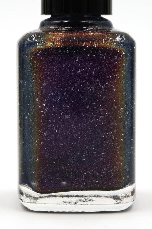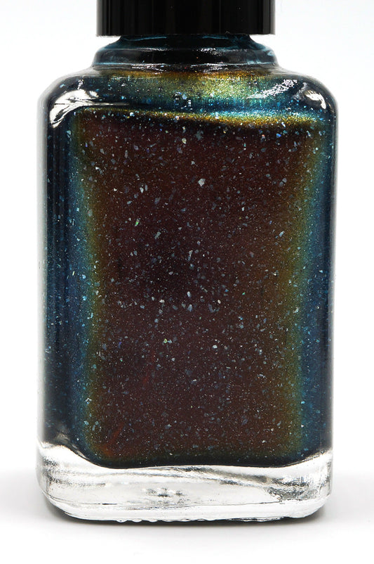 Where the Mountains Meet the Sea - brown/plum/inky blue multichrome linear holographic w/ flakies